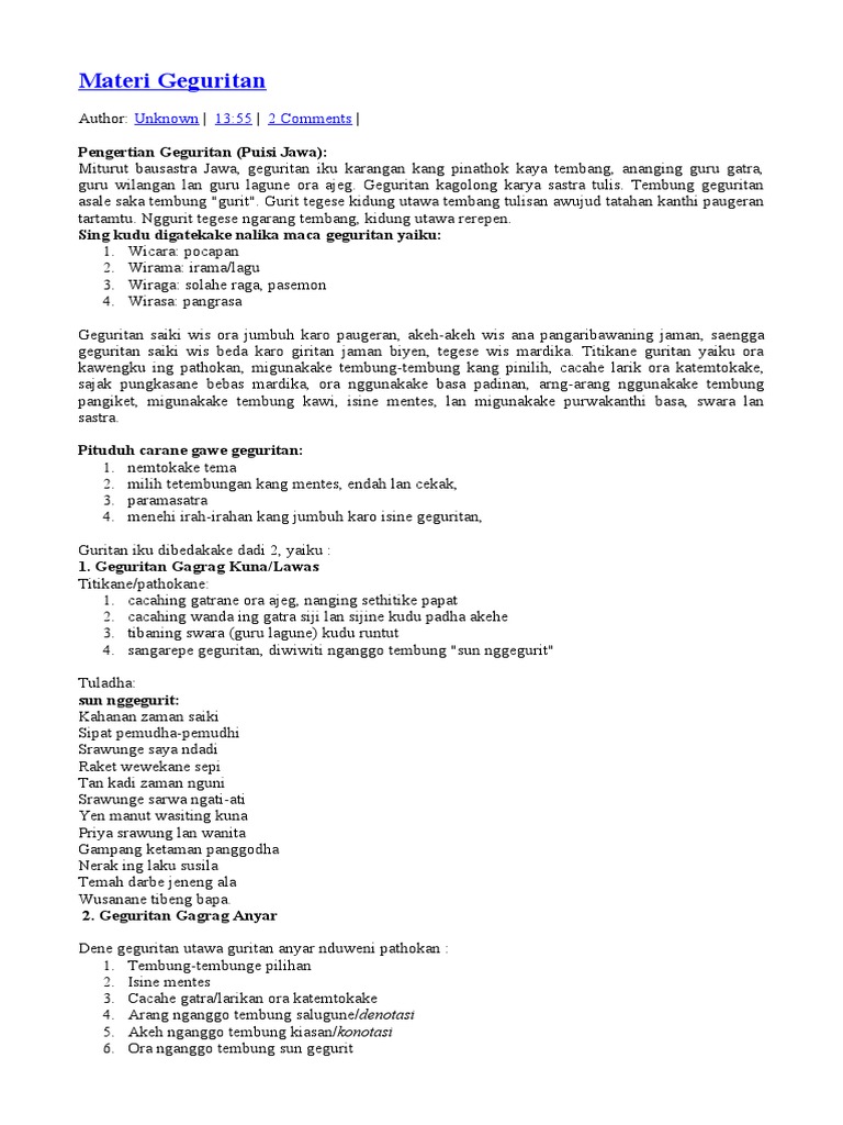 100 Contoh Geguritan Bahasa Jawa Lengkap Berbagai Tema from umbelen.com Check spelling or type a new query. Maybe you would like to learn more about one of these? We did not find results for: